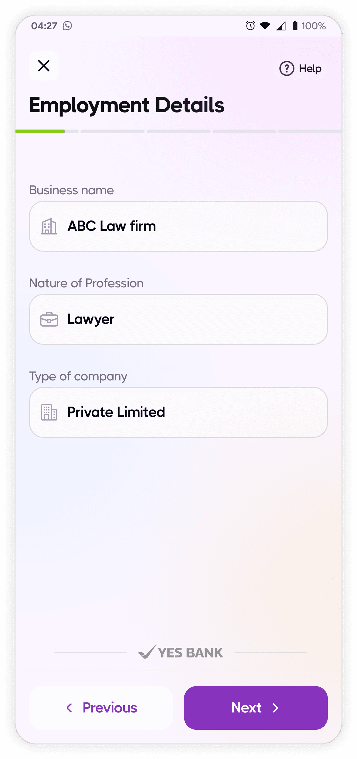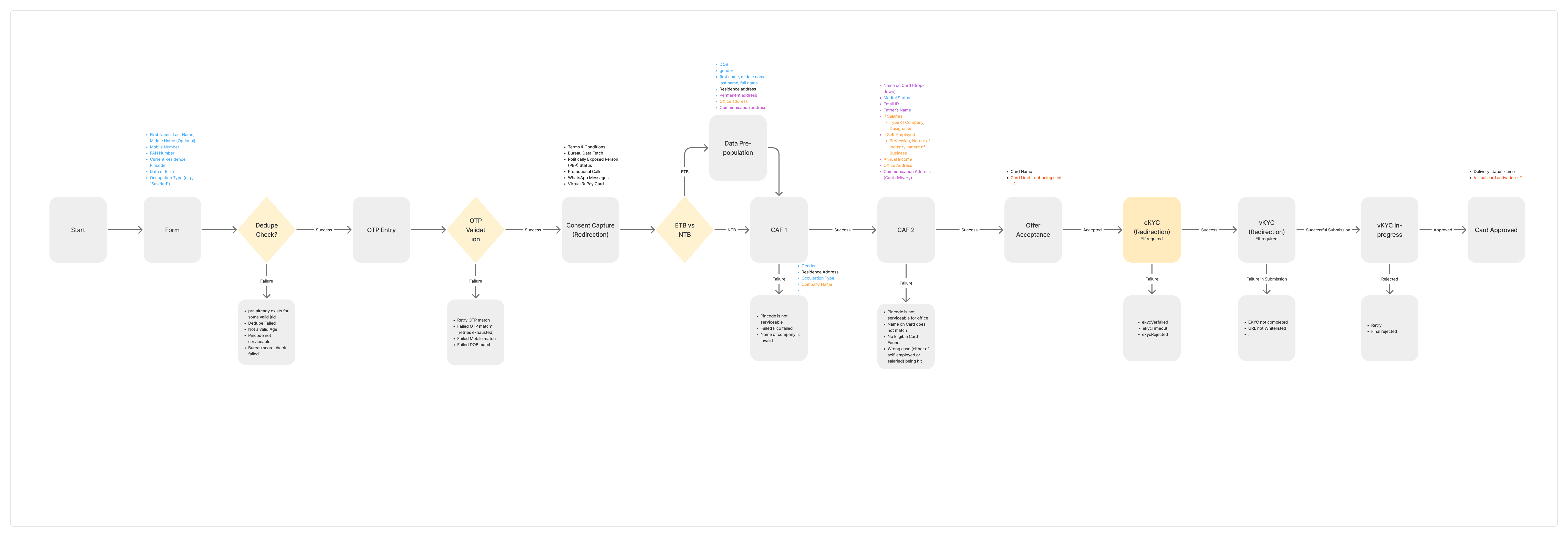 Current design has focused to create YES Bank credit card flow based on the bank's API's